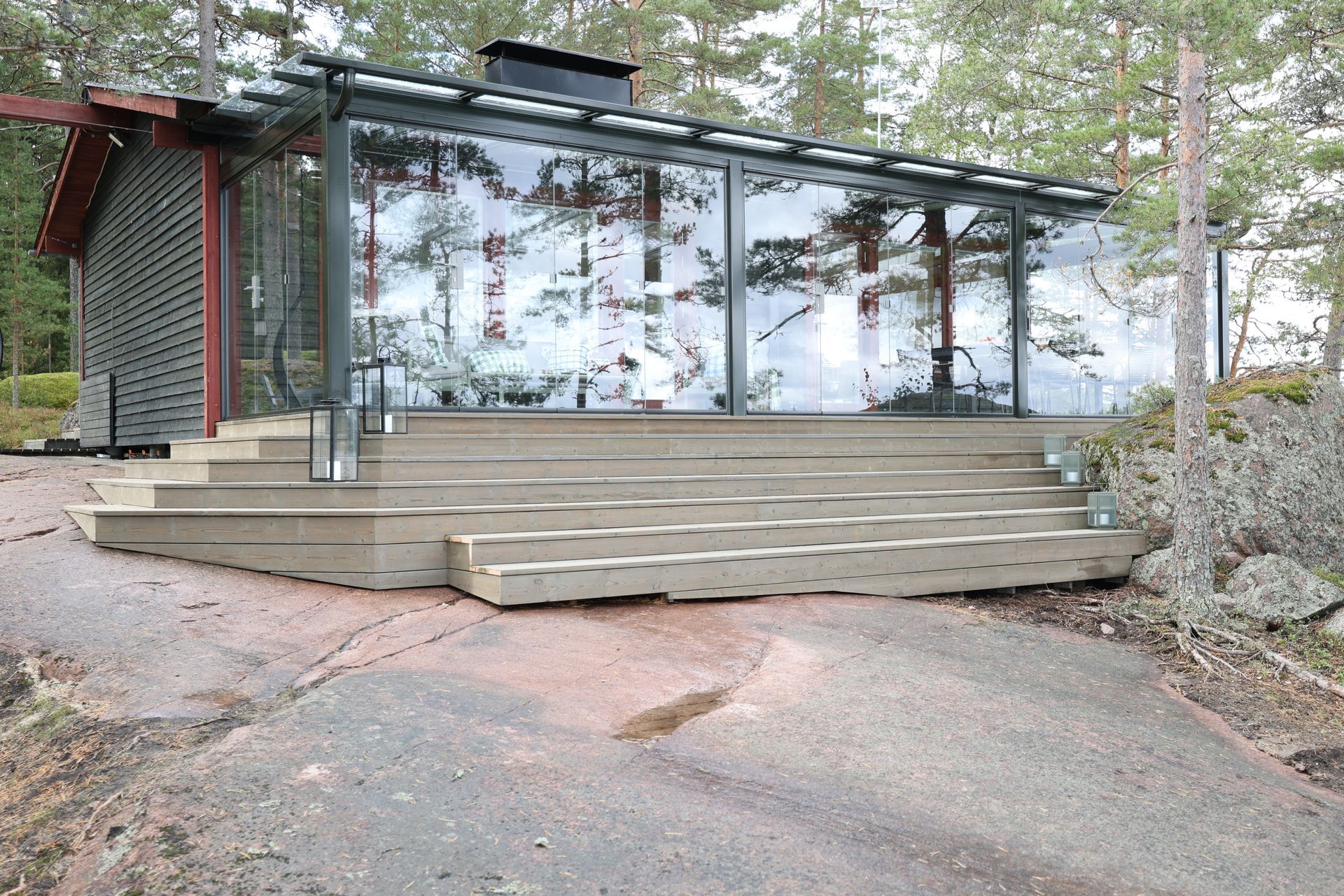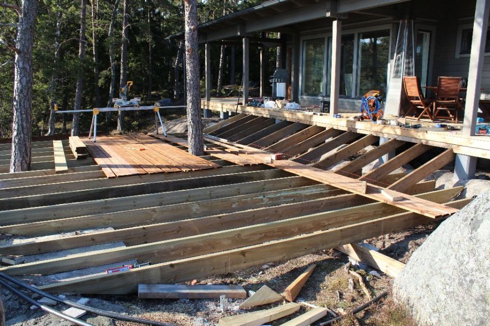 Terassin laajennus ja lasitus.